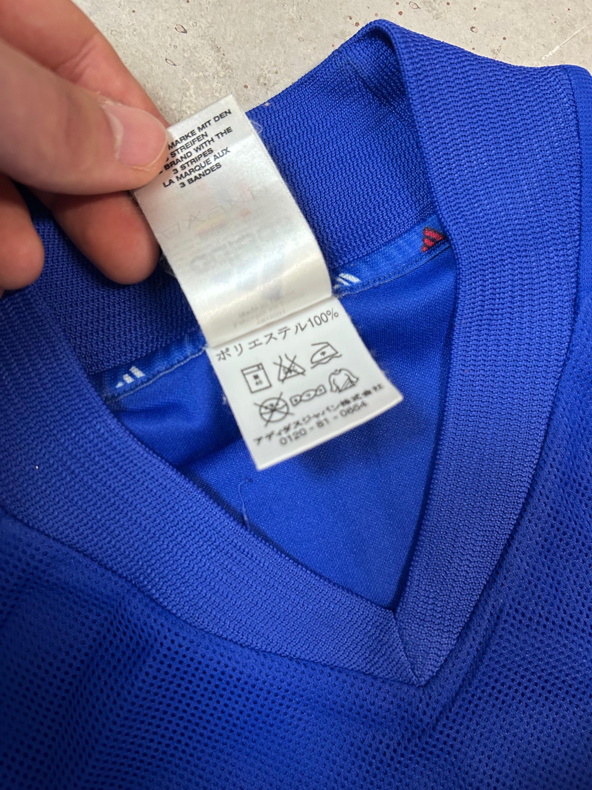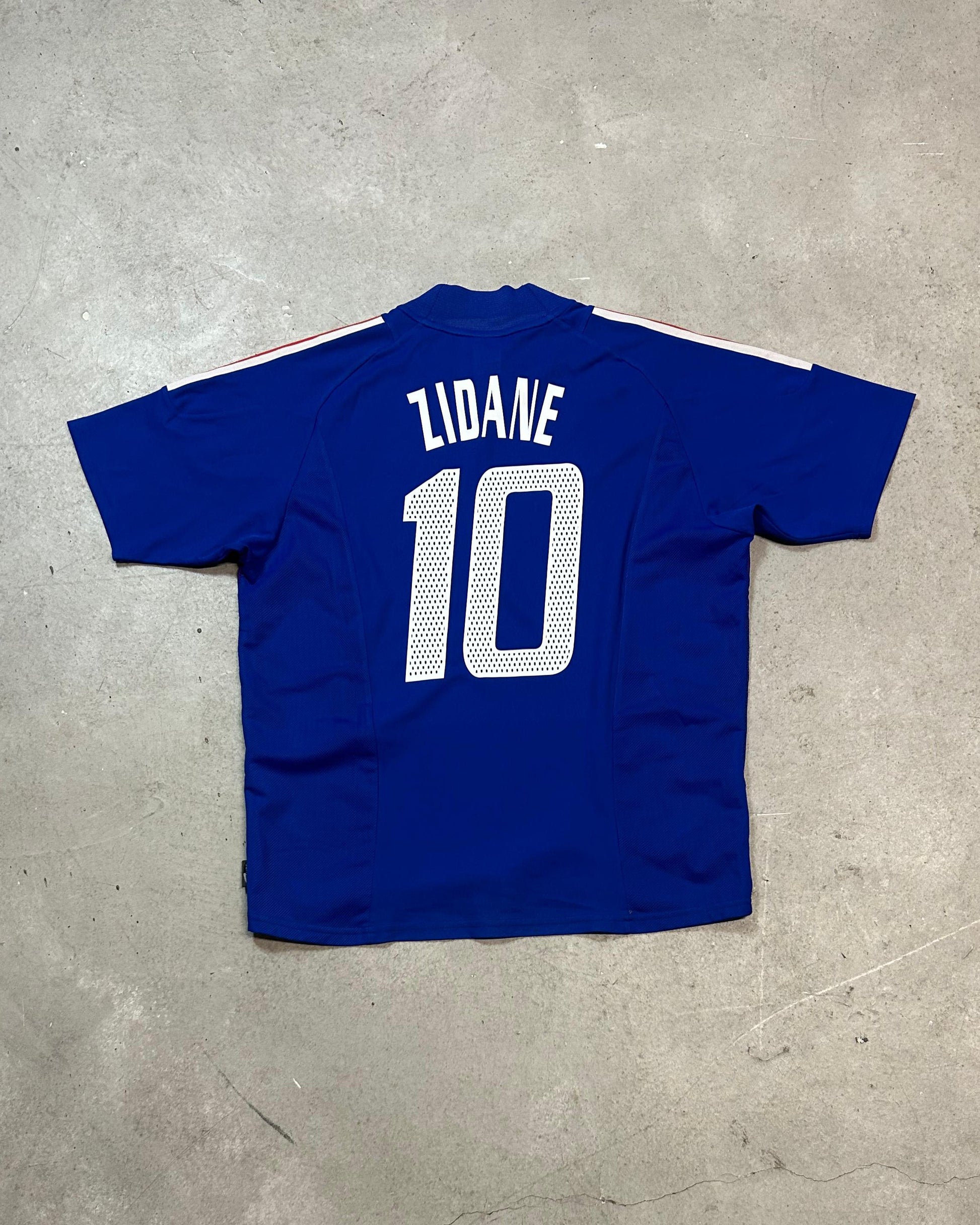 Frankreich Heim Trikot der Weltmeisterschaft 2002, beflockt mit Zinedine Zidane.
